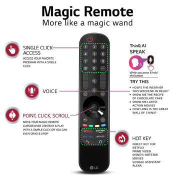AI ThinQ & WebOS 22 with User Profiles | Built-in Google Assistant & Alexa | Apple Airplay 2 & Homekit | Game Optimizer & Dashboard | α5 Gen5 AI Processor 4K | Unlimited OTT App Support: Netflix, Prime Video, Disney+ Hotstar, Apple TV, SonyLIV, Discovery+, Zee5 | ALLM & HGiG Mode | Magic Remote with Hot Keys & Voice Commands