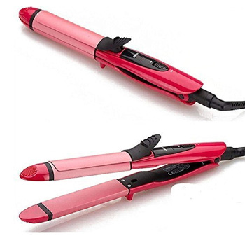 Hair Straightener and Curler, Hair Dryer Foldable and Trimmer For Women Hair Removal Kit Mini Hair Straightener Ceramic Plate Hair Straightener (pink).